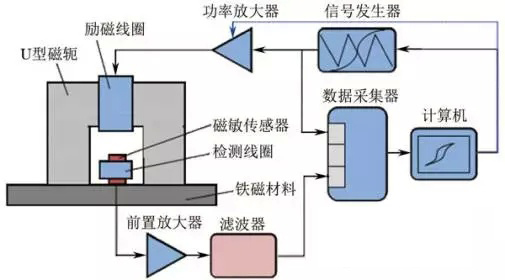 2003年,上海交通大學的陳立功等研究人員開始研制MBN傳感器及信號采集處理系統,研究了殘余應力和MBN信號的關系,建立了結合虛擬儀器技術的MBN殘余應力檢測系統,利用該系統進行了鐵磁材料熱處理后殘余應力的分析,指出熱處理后的板材MBN強度呈下降趨勢。2008年,他們改進了針對各向異性及非均勻殘余應力的MBN傳感器。