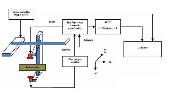 a.空氣耦合超聲波C掃描成像系統(tǒng)PC和超聲波脈沖發(fā)生器接收機系統(tǒng);b.X-Y掃描儀