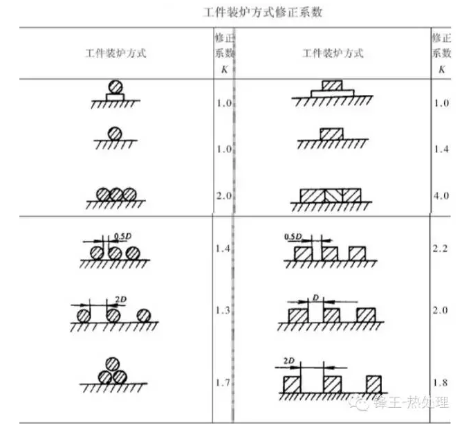 傳統的碳素鋼淬火加熱時間的計算公式:T=K?αD