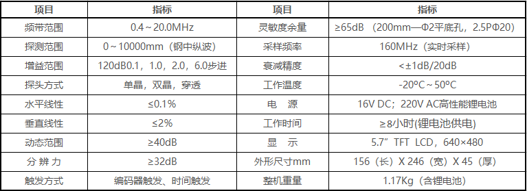 - 濾波頻帶可調,并具有射頻顯示,適用于各種工件的精確探傷。